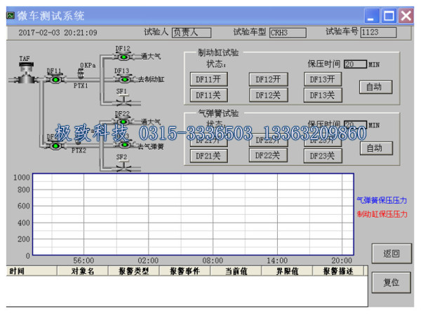微控试验单车是一套移动式密封性试验装置;目前主要应用于火车、动车组、地铁等气弹簧和制动缸的密封性试验。 微控试验单车具有操作简单,维护少,移动方便等特点,主要由电动阀门、压力变送器、PLC、计算机、及打印机构成。内置UPS,单次充电后可连续工作4小时;试验完成后自动打印曲线及报表;具有实时显示曲线功能,可随意设定保压时间;可存储100内天的试验数据,供历史信息查询。